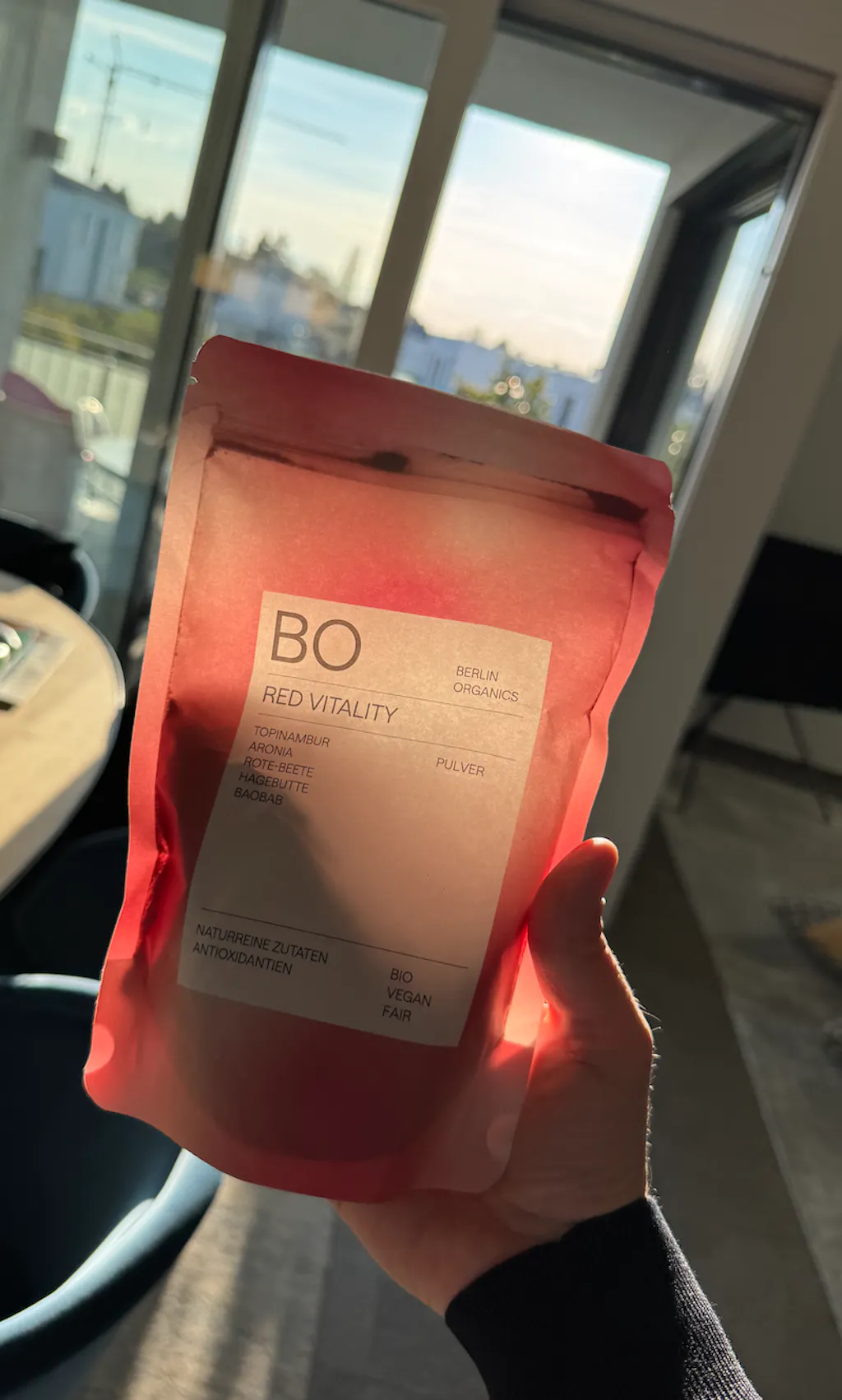 Mit dem RED VITALITY Superfood-Pulver von BO Berlin Organics wird gesunde Ernährung selbst in stressigen Zeiten einfach. Schon zwei Teelöffel täglich – ob im Smoothie, Joghurt, Müsli oder Getränk – reichen aus, um die belebende Kraft der Natur zu spüren.